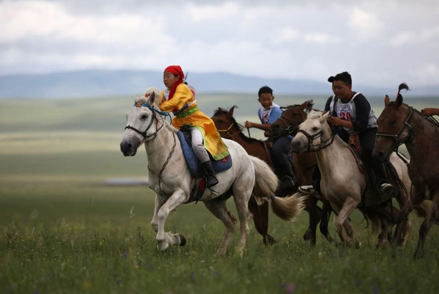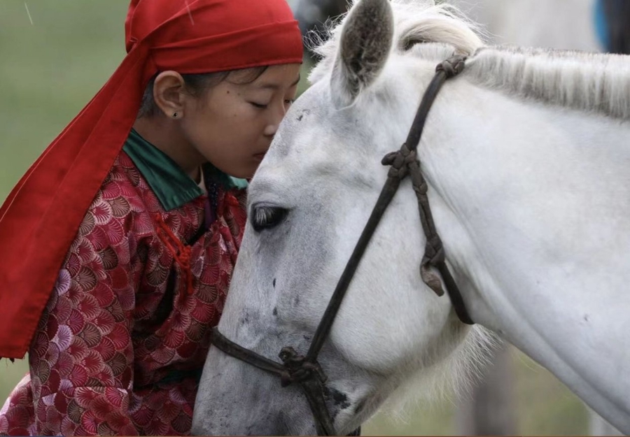 珠拉和她的“兔来”参加那达慕18公里耐力赛。(影片剧照)