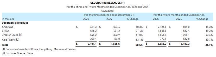 该季度,亚玛芬在全球地区均实现增长。其中,美洲市场收入同比增长18.3%至6.91亿美元;欧洲、中东和非洲市场增长21.4%至5.96亿美元;大中华区市场收入大涨41.8%至5.44亿美元;除中国以外的亚太市场大涨53.1%至2.69亿美元。